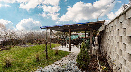 Zahrada má výměru 215 m² je upravená, udržovaná a nabízí dostatek soukromí. Nachází se zde pergola s posezením, ideální pro letní stolování, relaxaci nebo rodinná setkání. Za bránou na el. pohon lze pohodlně zaparkovat dvě auta.